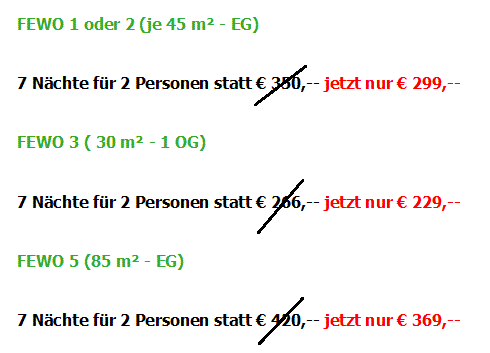 Alle Preise inkl. Nebenkosten & Endreinigung, jedoch